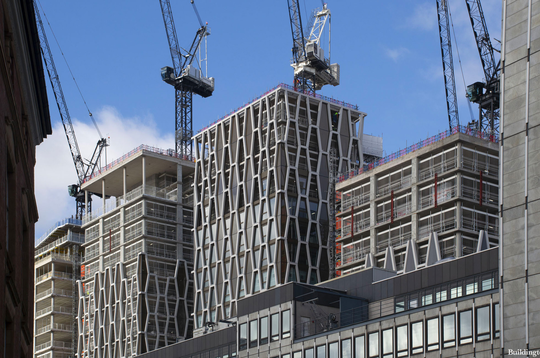 The project consists of six buildings – ranging between 13 and 19 storeys tall – surrounded by extensive public realm works. It sits on a 1.72-acre triangular site between Broadway, Dacre Street and Victoria Street and contains 268 luxury apartments designed by architects Squire and Partners.