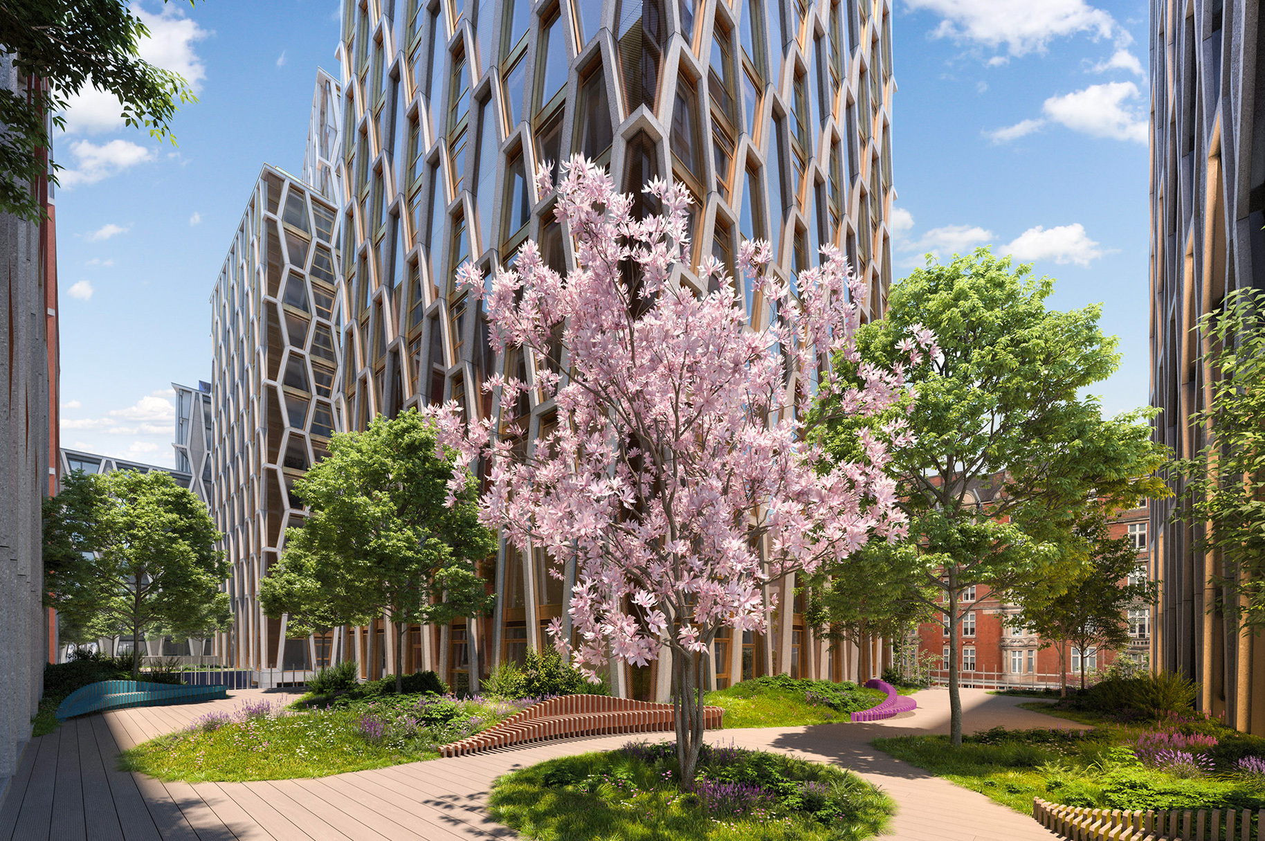 The development’s ground floor will house 25,000 sq. ft. of high-end retail units, while floors one to three will provide 116,126 sq. ft. of prime commercial space. Multiplex is also creating a colonnade between the east and west buildings, with feature landscaped residents’ gardens on the roof terraces.
